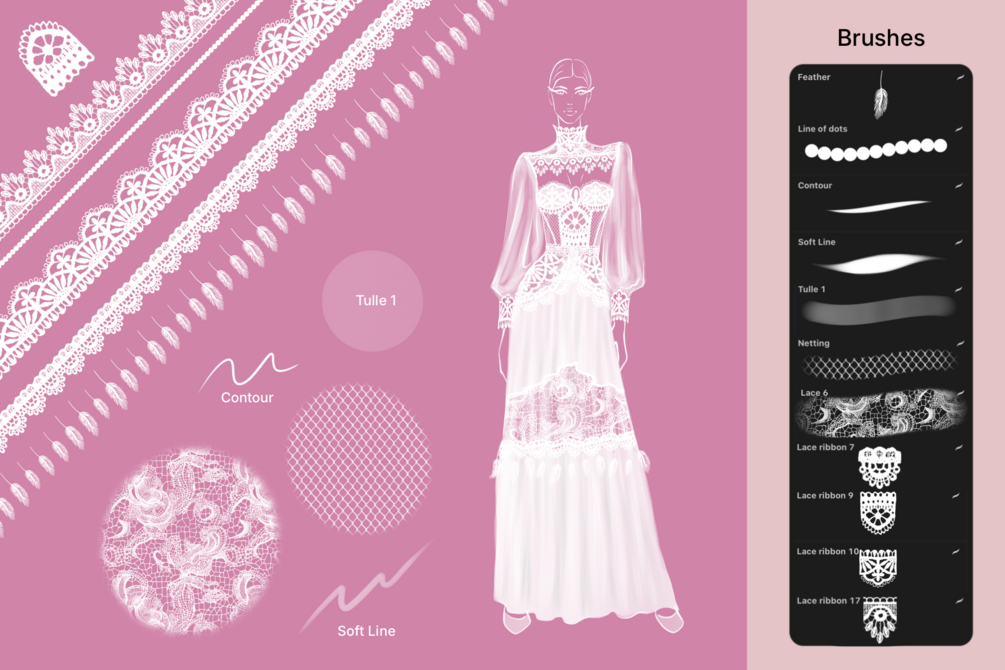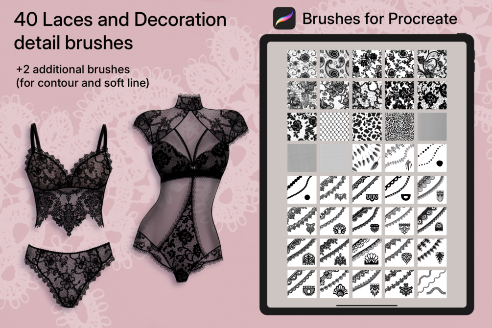 Laces and Decorations detail brushes for Procreate